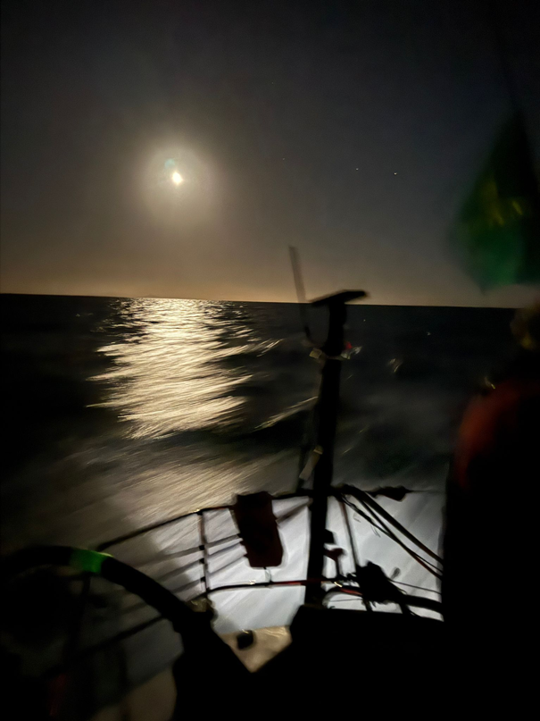 “It was a lovely brisk starlit night, last night, with hardly a cloud in the sky,” Kellett said. “The crew were enjoying the easy downwind slide in a 10-12 knot northerly that finally filled in after we found our own little parking lot yesterday, watching our competitors from behind slip closer and closer.”