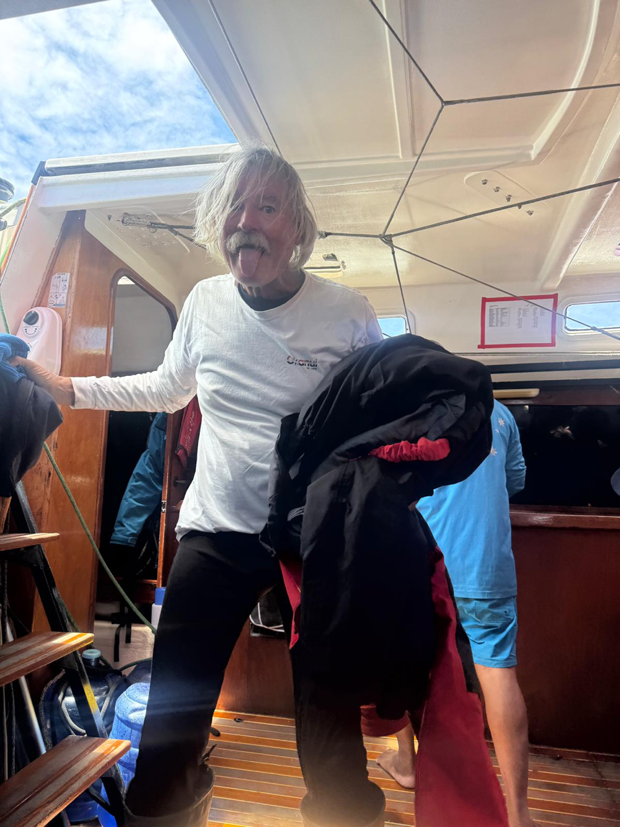 Larry Jamieson going crazy on his 39th Sydney Hobart - Antipodes pic.
