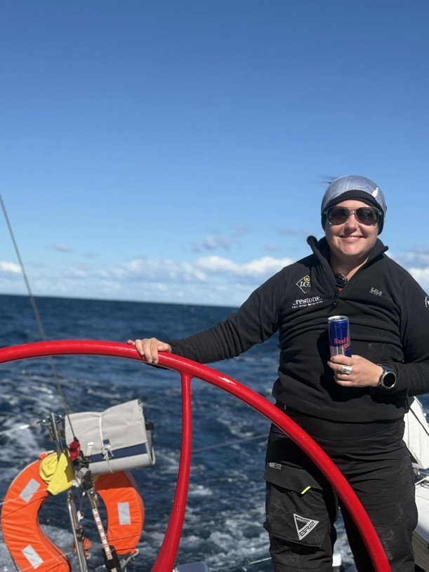 Human at the helm of Mondo in the 2025 Noakes Sydney Gold Coast Yacht Race - Greta Quealy pic.