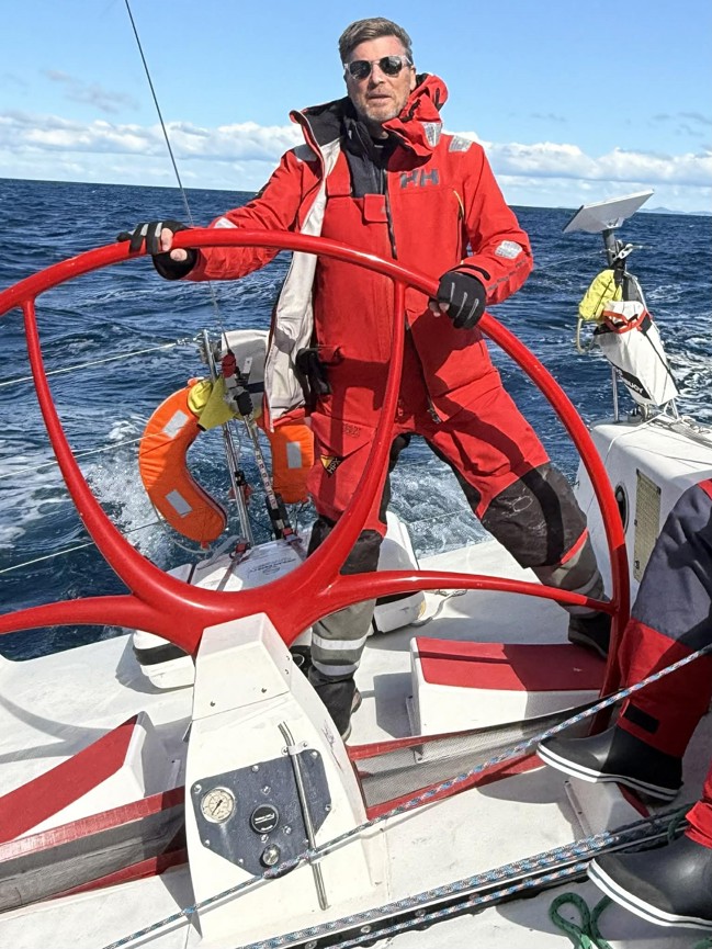 Callaghan at the helm of Mondo in the 2025 Noakes Sydney Gold Coast Yacht Race - Greta Quealy pic.