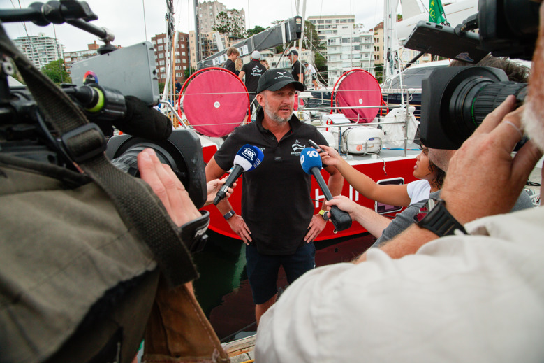 Przemyslaw Tarnacki chatting to media ahead of the 2025 Sydney Hobart - CYCA/Ashley Dart pic.