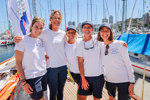 From left to right: Brouwer, Annie Stevenson (First Light), Lisa Callaghan (Mondo) and Annika Thomson (Ocean Crusaders J-Bird) ahead of the 2025 Sydney Hobart. Image: CYCA/Ashley Dart