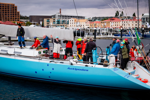 Lindsay May arrives in Hobart in 2023 on board Antipodes. Image: CYCA/Salty Dingo