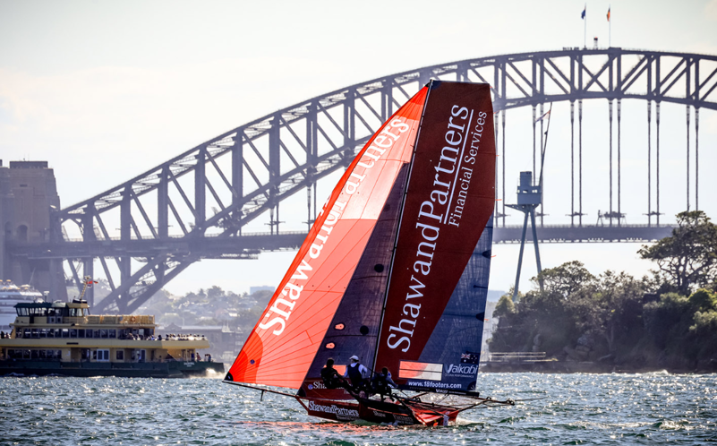 An 18ft skiff racing in Sydney Harbour - SailMedia pic.