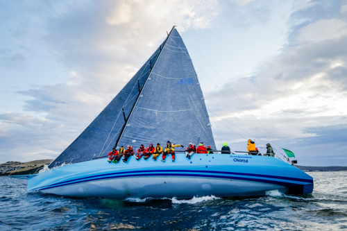 The next yacht due across the Castray Esplanade finish line is Ocean Crusaders J-Bird, skippered by Annika Thomson, who owns the TP52 with husband, Ian. The Queensland yacht was due to cross the line as we went to press.