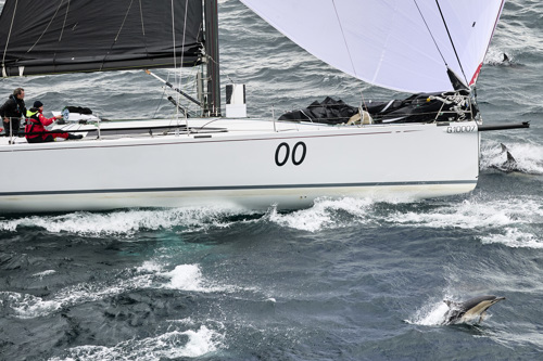 Dolphins join Extasea for the ride to Hobart. Image: Rolex | Carlo Borlenghi